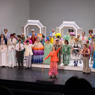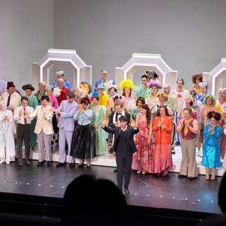 La regia di Anna Bernreitner ha avvolto la trama in un’aura luminosa, colorata, giovanile e di grande freschezza visiva. Non sono mancati tuttavia momenti di sovraccarico, come le numerose interpolazioni di musica pop, da Bohemian Rhapsody a Suavemente, inserite con esiti alterni e non sempre pienamente pertinenti. Il primo atto è risultato il più convincente e il maggiormente rispettoso dell’originale, con un’ouverture che già sviluppa lo scherzo di Eisenstein, evocato nel titolo stesso dell’opera, e una scenografia costruita in profondità, fatta di pannelli mobili che hanno creato situazioni comiche efficacissime, come il continuo passaggio dell’amante durante il duetto tra Rosalinde ed Eisenstein. Qui la regia ha aderito con intelligenza alla partitura e al libretto.Proseguendo, però lo spettacolo si è allontanato progressivamente dalla rotta tradizionale. La festa di Orlofsky è diventata una festa in spiaggia, in sé simpatica, ma che ha anche condotto a una completa snaturalizzazione del personaggio, trasformando dapprima in un’anziana signora inglese e poi in una giovane festaiola spagnola. Coerentemente con questa impostazione, l’intermezzo tradizionale tra secondo e terzo atto è stato sostituito dalla Triqui-Traqi Polka, revisione “sud-americanizzata” della Trisch-Trasch Polka di Paul Desenne. Nel terzo atto la regia ha stravolto ulteriormente il senso dell’azione: Frosch è scomparso, sostituito da tre voci narranti esclusivamente in tedesco, che hanno monopolizzato la scena a lungo, relegando la musica a pochi interventi e facendo perdere il filo drammaturgico. Il risultato, pur visivamente accattivante, è apparso eccessivamente libero, con dialoghi spesso rimaneggiati in modo non sempre felice. Una regia, in sostanza, che ha spesso privatol’opera della sua naturale essenza viennese e, di conseguenza, della sua divertente eleganza.
